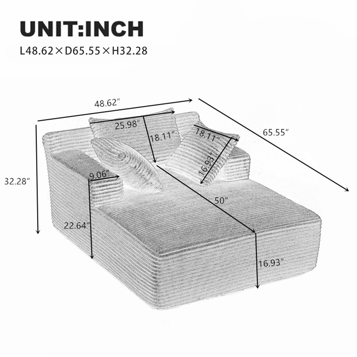 48.5"W Corduroy Chaise Lounge Sofa