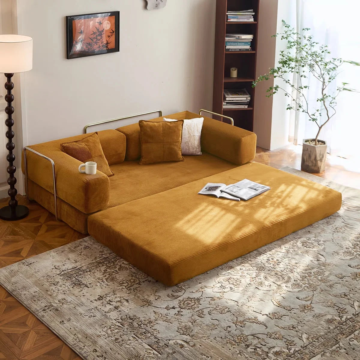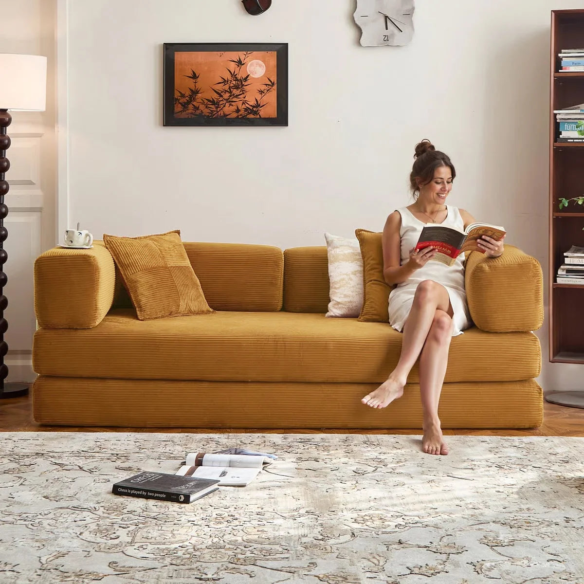 I was a little unsure at first, but this sofa bed really impressed me. The color is rich and exactly as pictured. The corduroy texture feels soft yet durable, and it gives the space a warm, modern vibe. Assembly was straightforward and the build feels solid – no wobbly arms or uneven cushions.